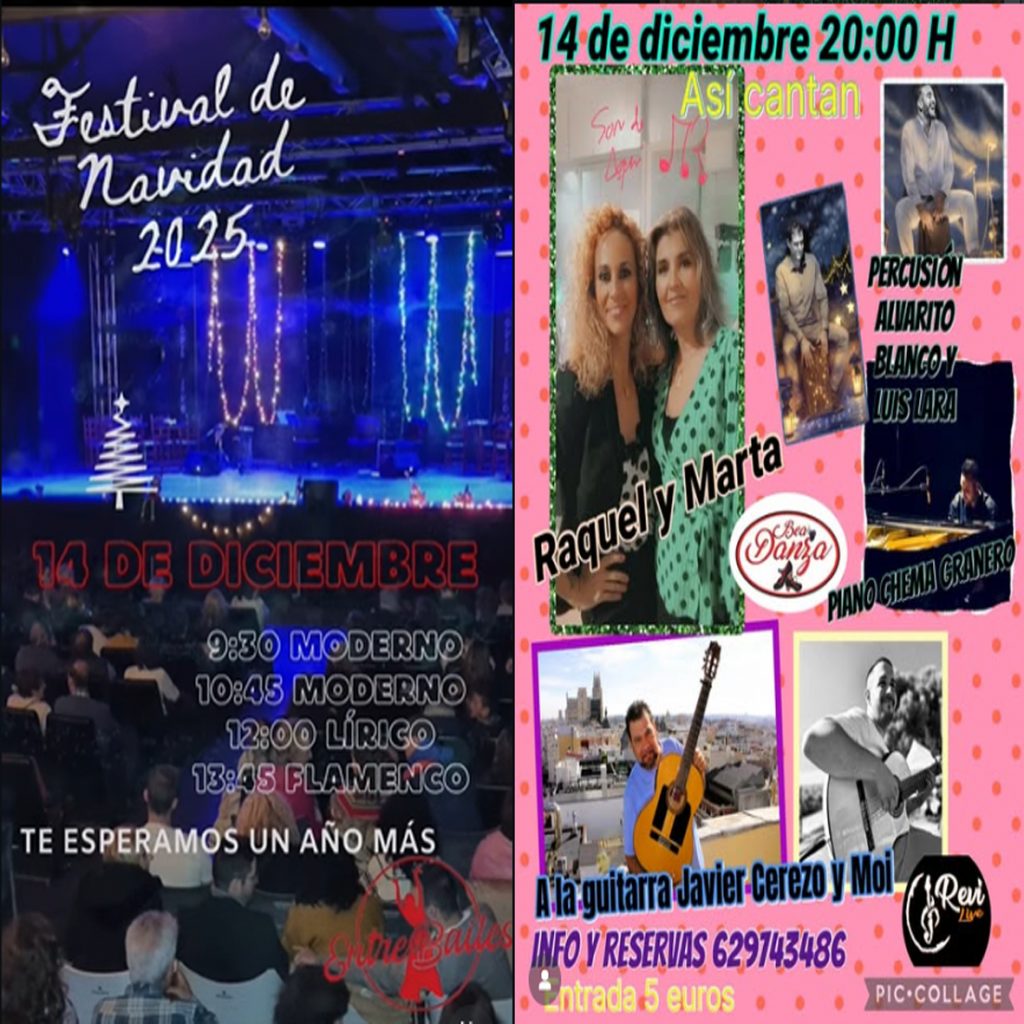 Evento: FESTIVAL NAVIDAD 2025 BAILES Organiza: Bea Danza + Entrebailes Fecha: 14 diciembre 2025 Entradas: aquí