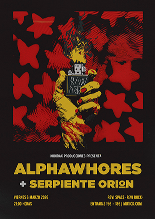 Evento: ALPHAWHORES + SERPIENTE ORION Bandas: AlphaWhores + Serpiente Orion Fecha: 6 marzo 2026 Entradas: aquí Sala: Revi Space