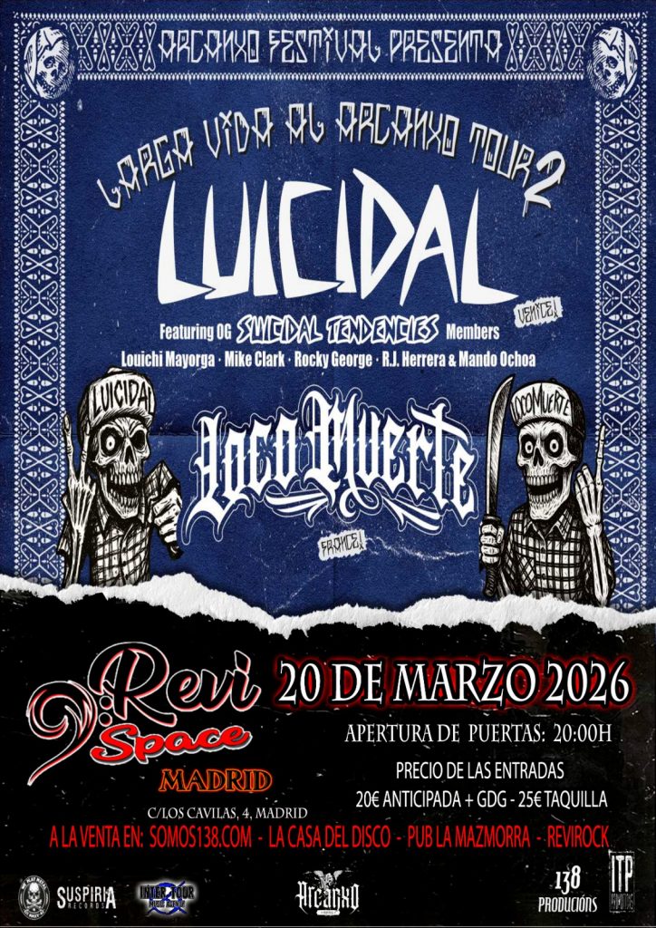 Evento: LARGA VIDA AL ARCANXO TOUR 2 Bandas: Luicidal + Loco Muerte Fecha: 20 marzo 2026 Entradas: aquí Sala: Revi Space